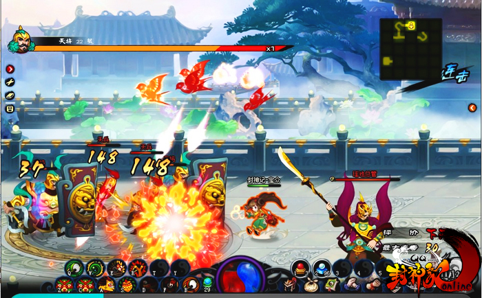 上述八人的攻击方式,都简单易懂且威力十足。在实际对战时,玩家并不需要像传统网游一样以繁琐、精妙的操作克敌制胜。《QQ封神记》已将“连操设计”化繁为简,玩家只需以简单的操作便能达到同样的目的,但强烈的画面打击感却丝毫不减。